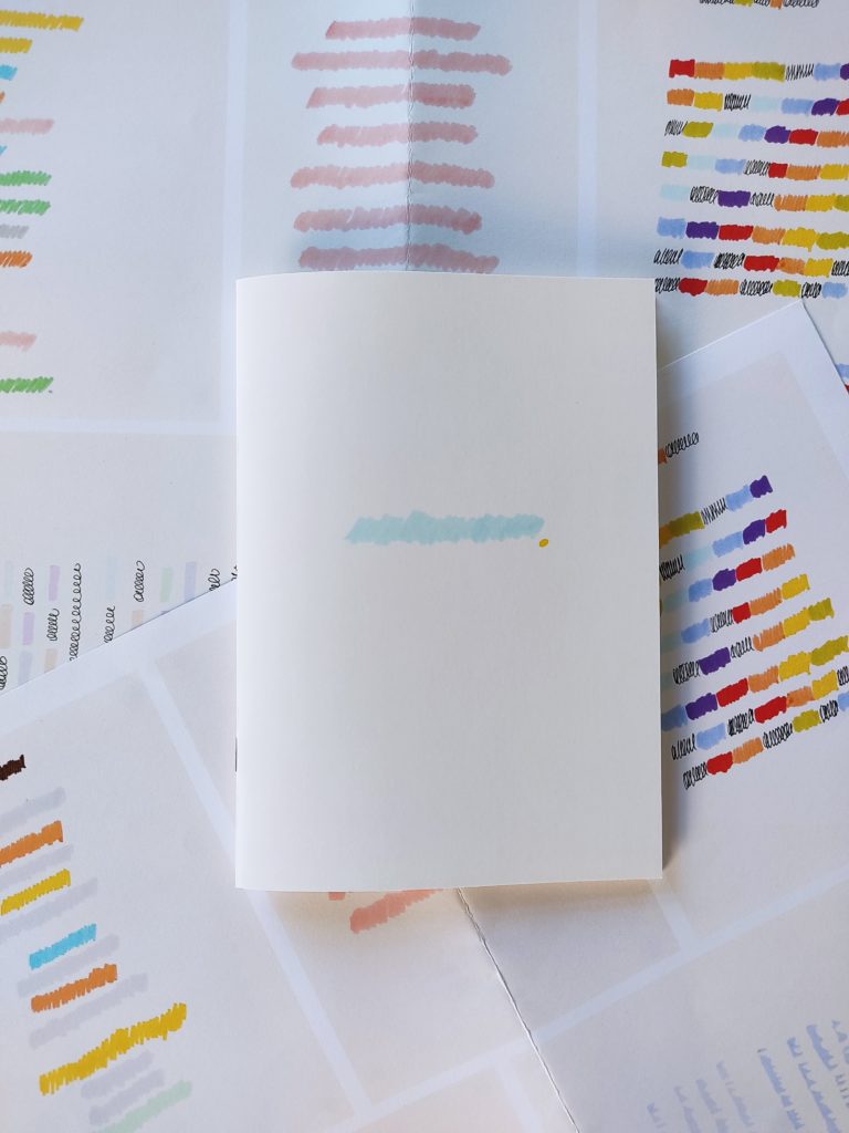 Digital print on uncoated paper, long stitch binding with silk thread.