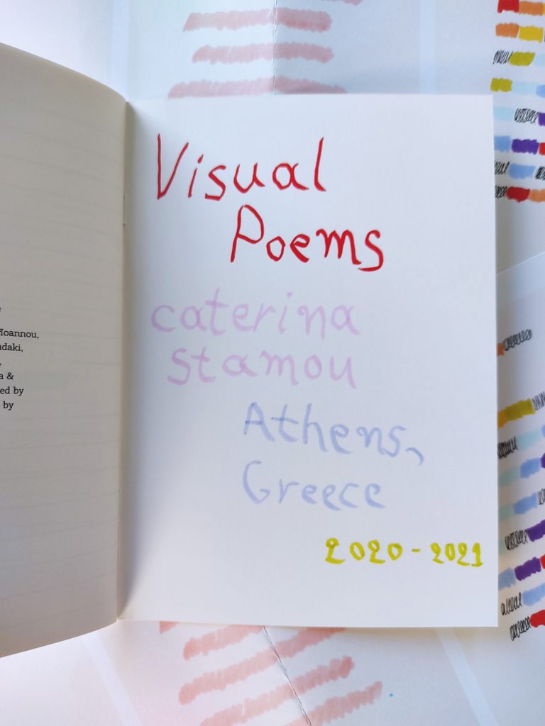 Both as a writing process and a conceptual utterance, these visual poems were fueled by an ardent desire to cope with feelings of anxiety and loneliness inclicted by the pandemic. As a way against and out of a system which is incapable of taking care of us all, these poems came as a comfort within the search for a new language that activates itself from inward and experiments with visual, abstract and gestural expressions. This process lasted for over a year during the first and the long, second lockdown in Greece. All poems have been made with the use of materials (pens, pencils and markers) that were available on my desk while art supplies stores in central Athens were closed. Through these poems I opt for creating a visual art whose impetus exceeds financial capability, a language open for the schematic and the absurd and a writing so in love with itself that contemplates and progresses beyond logocentrism and conventional modes.