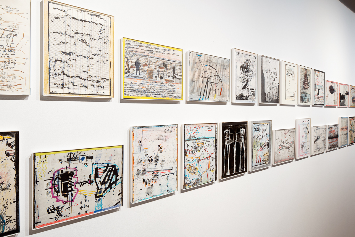 Chatter picks up this thread in the present, creating a new, deconstructed artist book from recent drawings. Chosen by Appel and the curator in turn, the pages of this exploded book form a wordless conversation of visual correspondences—rhyming, for example, the circling shadow of a spring with a meandering doodle or the outline of a conical prism—and call out enduring motifs that arise across disparate media.