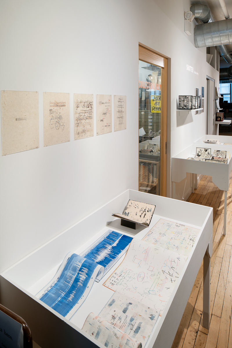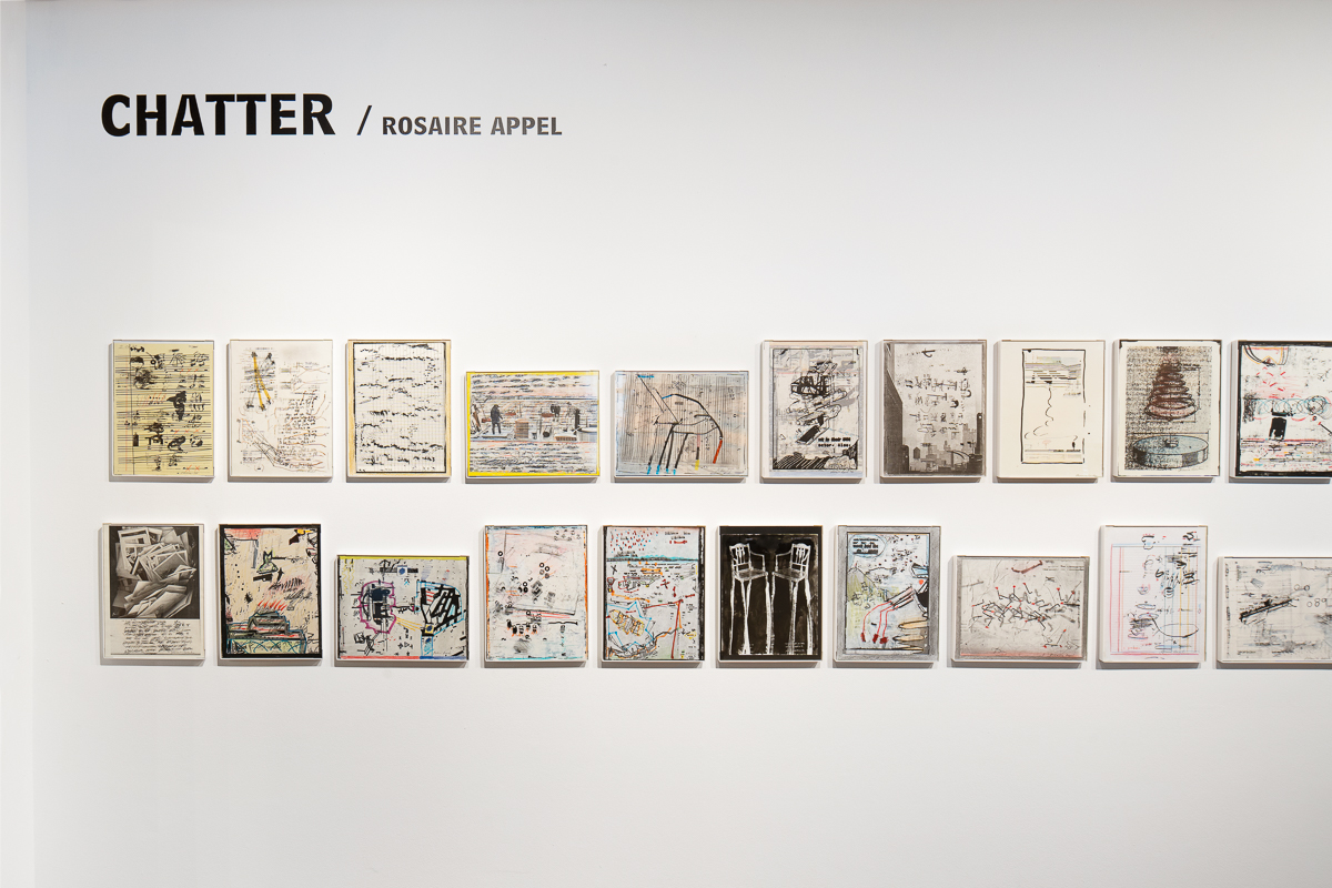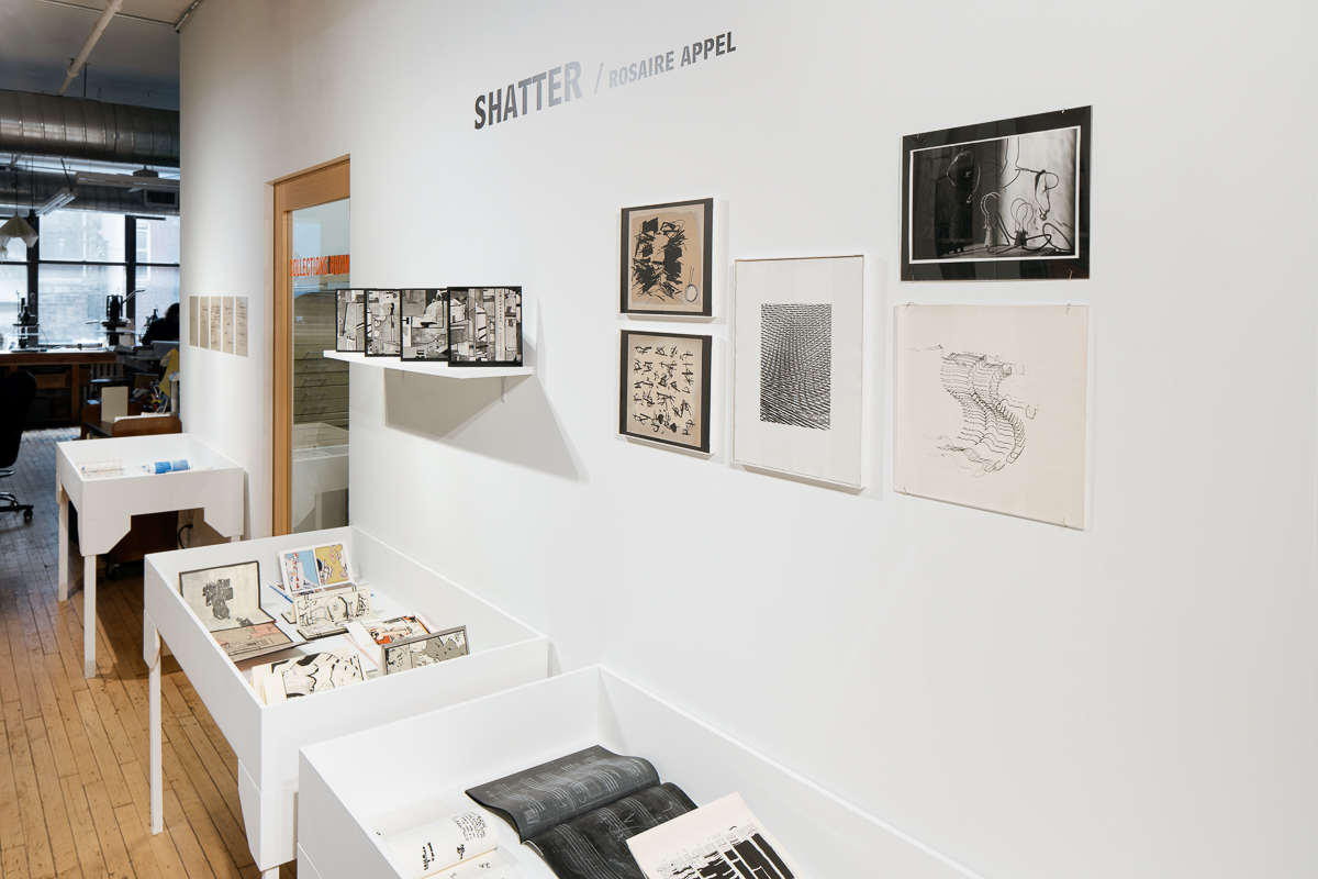 Rosaire Appel produced her first artists’ books and asemic texts in the 1990s after decades of working in painting, photography, and literature. Since then, her practice has grown to encompass abstract comics, unconventional sound scores, and books that emerge from diagrammatic, cartographic, calligraphic, appropriative, and redactive techniques. Shatter / Chatter, an exhibition curated by Nicole Kaack, traces through-lines within the artist’s work across media and places her within a matrix of visual, literary, and sonic traditions.