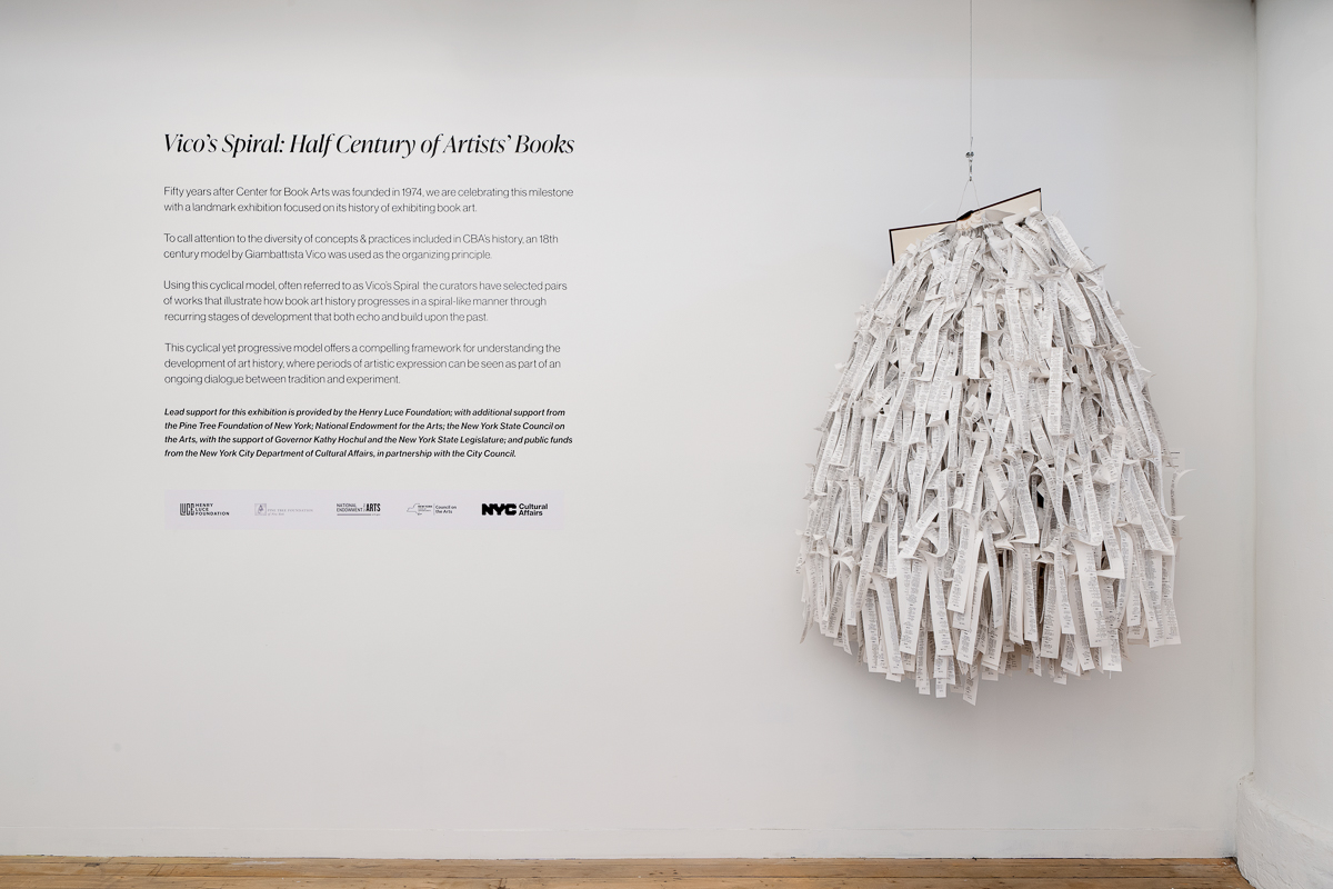 Fifty years after Center for Book Arts was founded in 1974, we are celebrating this milestone with a landmark exhibition focused on its own exhibition history. The overarching theme is the innovative nature of the range & diversity of artists’ books concepts & practices through the lens of Vico’s Spiral: his nonlinear vision of history has proved to be a very useful tool when approaching the recurring ideas and breadth of methodologies presented these past fifty years.
