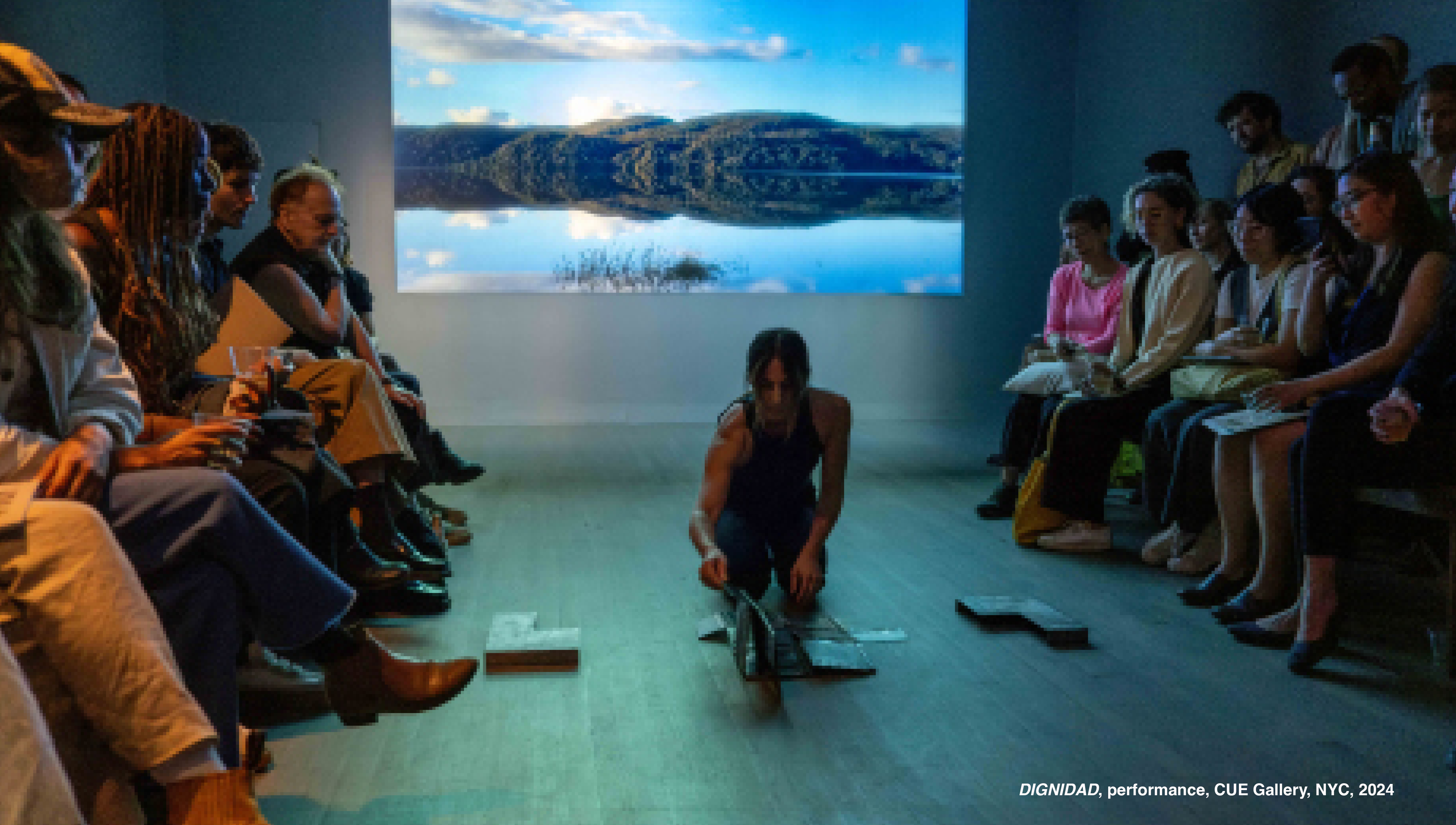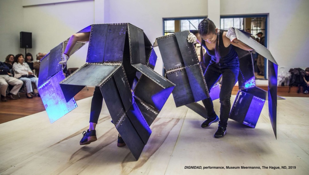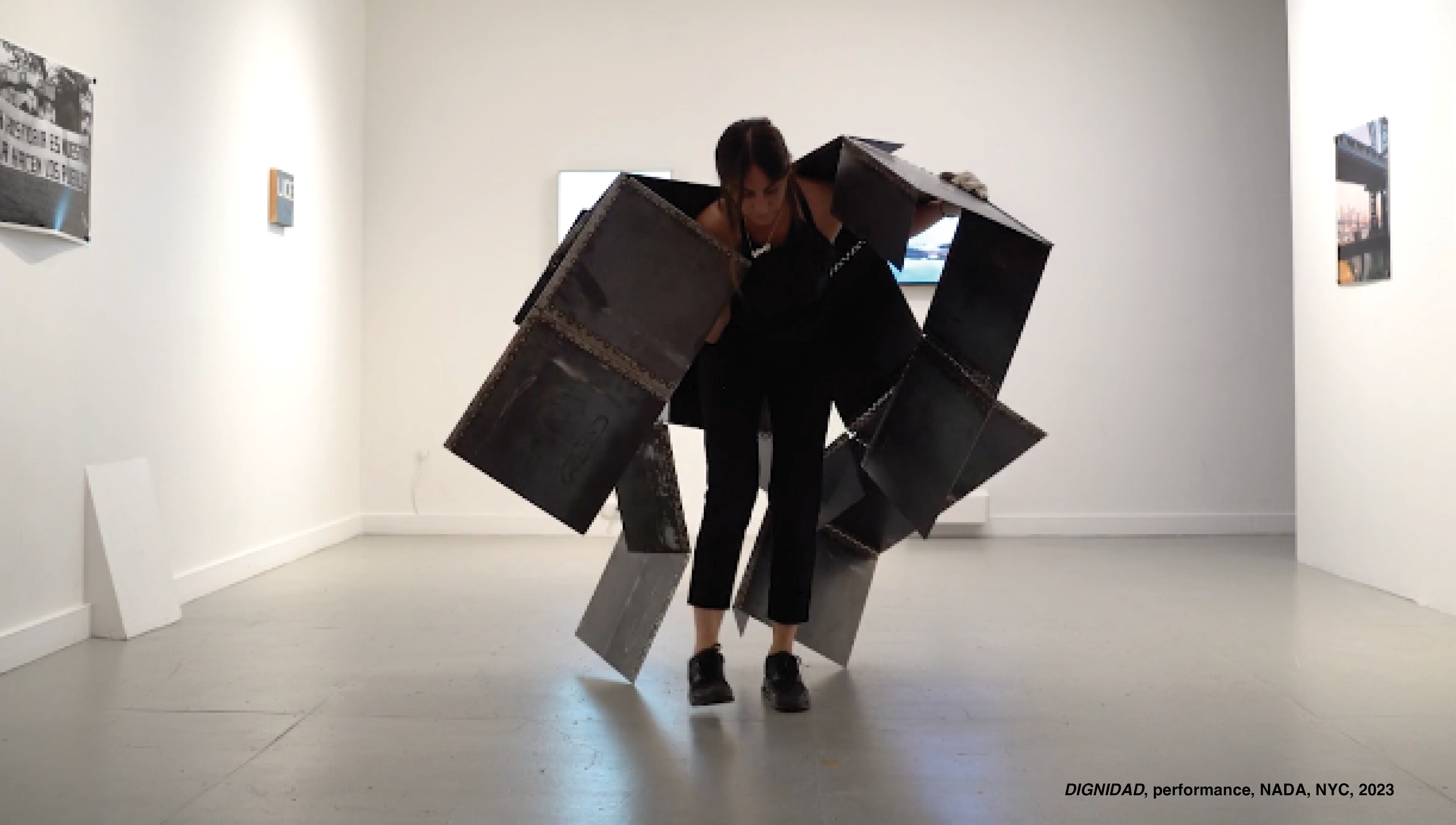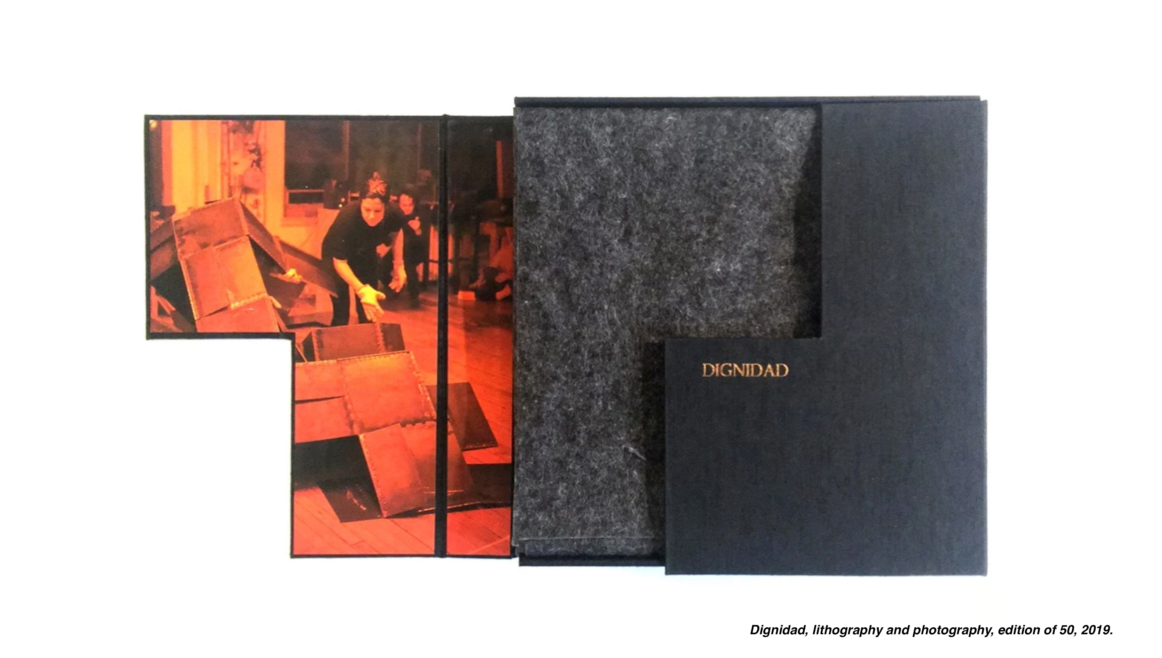 She has exhibited nationally and internationally at The Print Center, Philadelphia; Goethe Institute, Montreal; Un Lugar, Madrid; Fordham University, New York; Trinity College, Connecticut; NAC Gallery, Santiago, Chile; Museum Meermanno, The Hague, Netherlands; Animal Gallery, Santiago, Chile; Center for Book Arts, New York; National Archive of Chile, Santiago, Chile; BRIC Arts Media, Brooklyn, New York; Cultural Center of Antofagasta, Chile; and the Museum of Memory and Human Rights, Santiago, Chile. Her work has also been featured at the Triennial of Poli/Grafica de Puerto Rico: Latin America and the Caribbean; Lincoln Center, New York; Public Art at Rockefeller Center in collaboration with the Climate Museum, New York; the LA Art Fair with the Museum of the Americas, California; the Immigrant Artist Biennial, New York; the International Printmaking Biennial of Douro, Portugal; and the National Museum of Women in the Arts, Washington, DC. San Martin has received four times the Fondart Chilean Government grants; a Sustainable Arts Grant; two New York Foundation for the Arts grants. San Martin has been performing and talking about her projects “Moving Memorials,” “Dignidad,” and “The Javelin Project,” in museums, public spaces, and cultural centers since 2016.