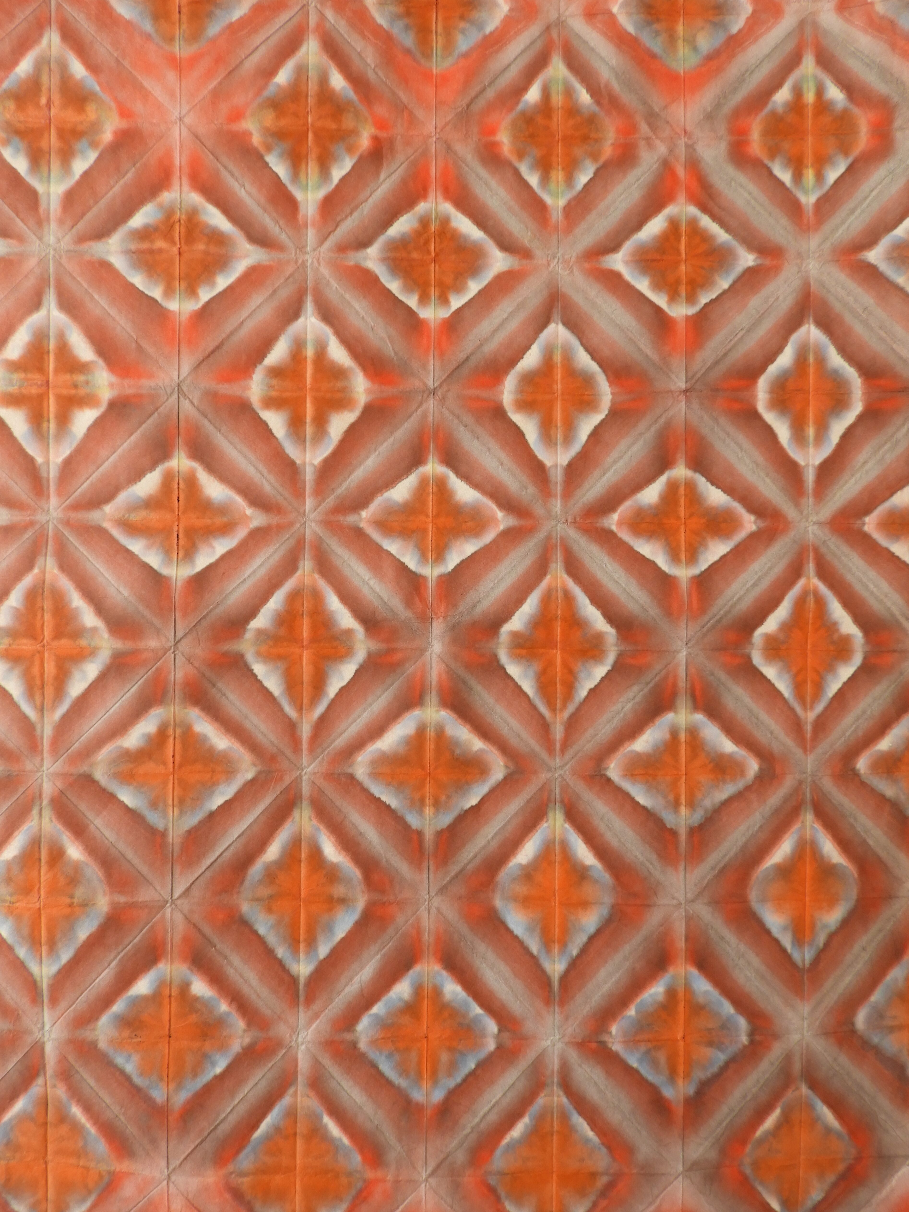 The excitement of a child ‘opening a holiday package’ occurs with the unfolding of each bundle of itajime (Japanese for fold and clamp) dyed paper! Learn to create intricate traditional Japanese patterns, then explore different dye and coloring possibilities. Itajime can be highly skilled and controlled and always offers a collaboration between your hands, the paper qualities, colorants used, time, temperature, and humidity.