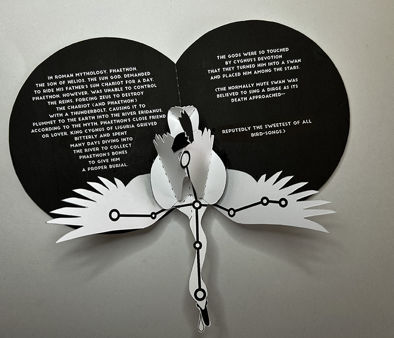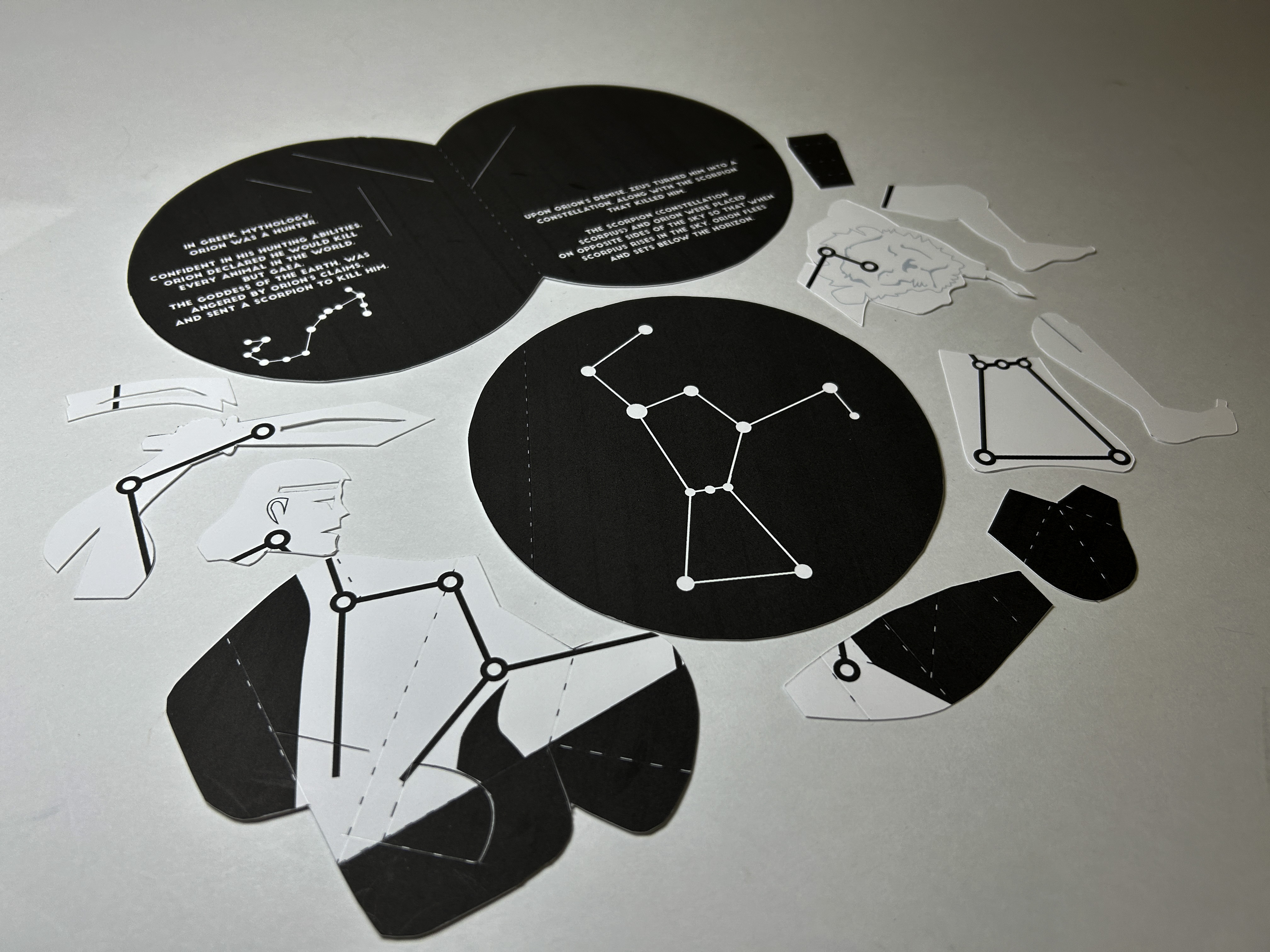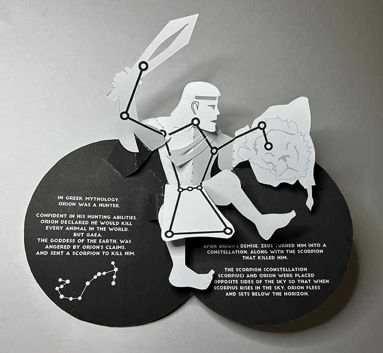 In this two-day workshop taught by Bruce Foster, students will use precut kits to construct three different pop-up cards of several well-known and recognizable constellations! Imagine the delight of opening a card with a cover simply adorned with a constellation of dots and lines to reveal the myth in full form but still shining with the very constellations in place! Connect the dots at last! Join Bruce on this celestial journey through the heavens with the magic of paper and sculptures dancing into view!